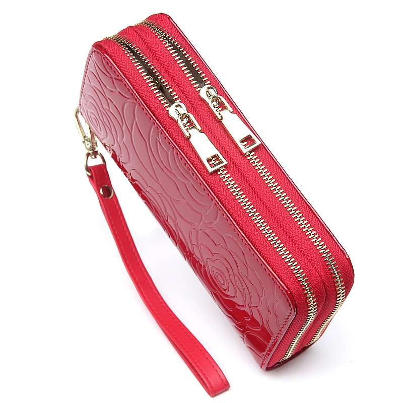 華やかな薔薇の型押しが施された光沢のあるレザー長財布。高級感に満ちたデザインは、エレガントなスタイルを演出します。大容量ながら、カードやお札をすっきりと整理できる多機能内装が魅力です。ファスナー式開閉が中身をしっかり守り、付属ストラップで持ち運びも便利。普段使いから特別な場面まで活躍する、洗練されたレザー財布です。心を豊かにするアイテムを手に入れましょう。