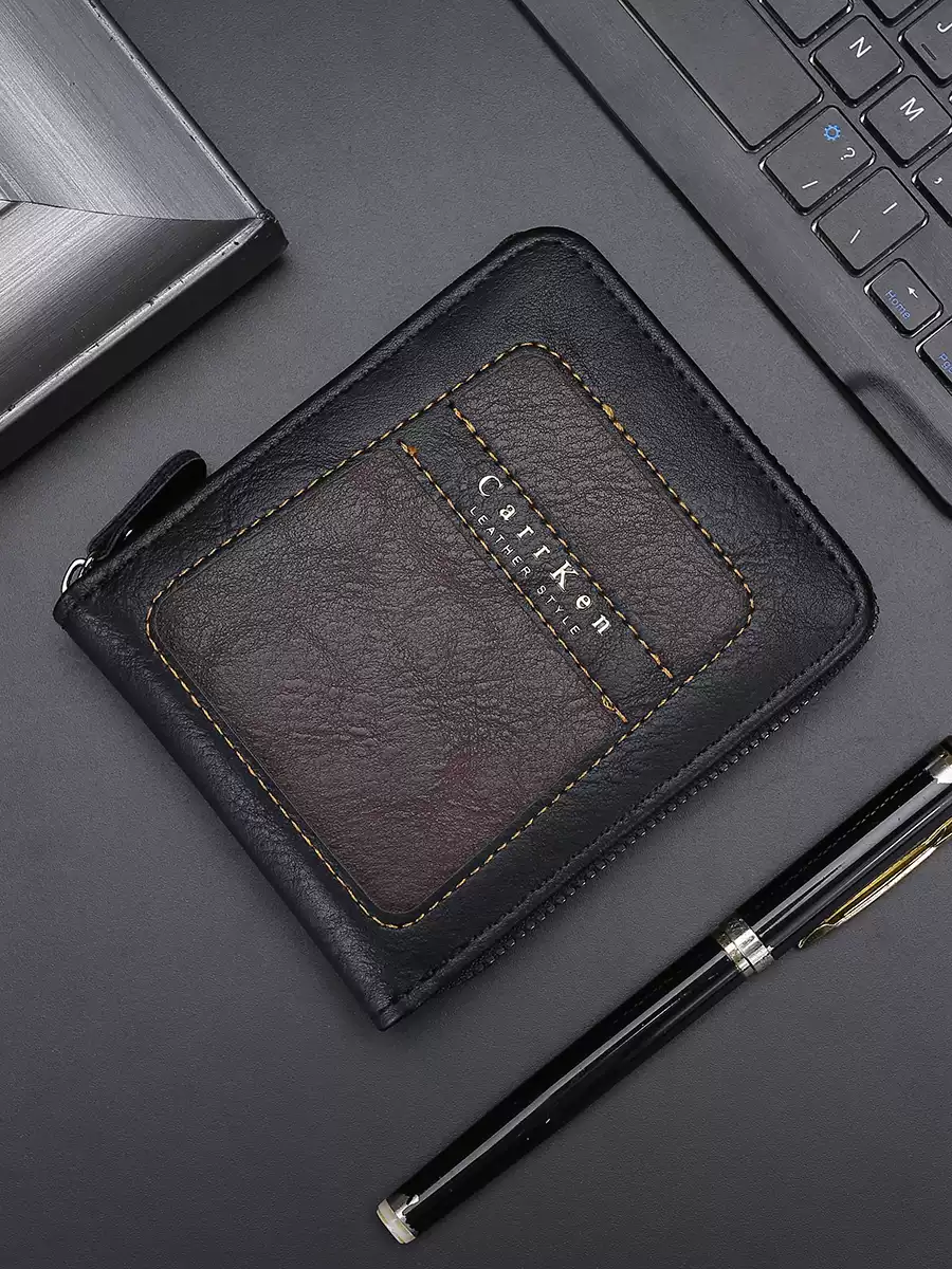 大きく開くラウンドファスナータイプで、中身の出し入れがスムーズで小銭も取り出しやすい実用的な構造です。