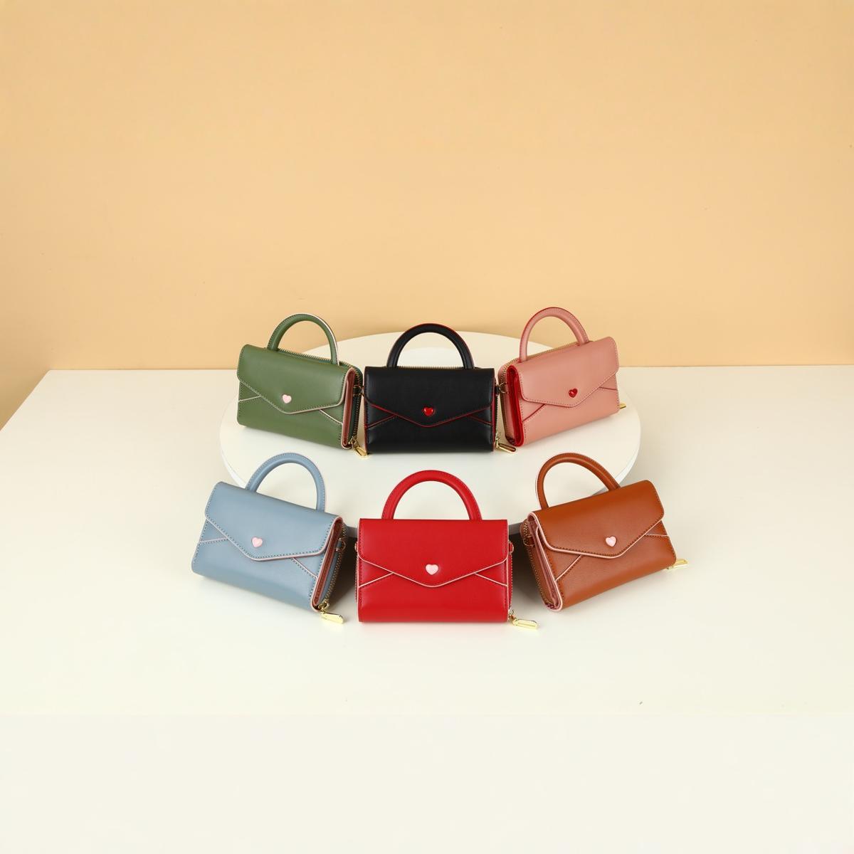 上品な曲線美が際立つハートフラップのレザー二つ折り財布。愛らしいハートモチーフを取り入れたフラップデザインが、遊び心を添えつつもシンプルで洗練された印象を与えます。コンパクトなサイズ感ながら、必需品をしっかり収納できる実用性を兼ね備え、日常使いから特別なシーンまで幅広く活躍します。高品質な革を使用し、長く愛用できるアイテムです。
