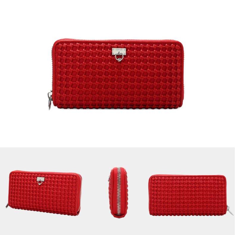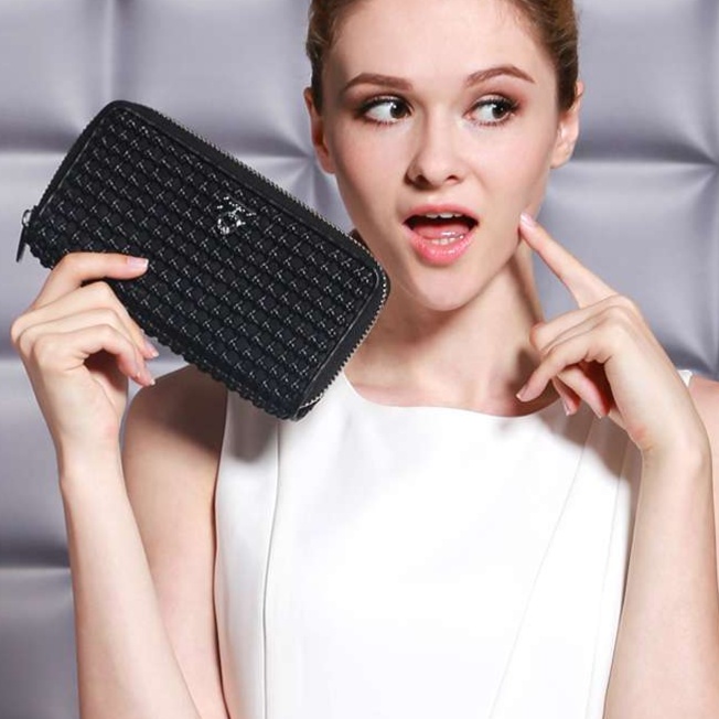 ジッパー式の大容量設計で、小銭や紙幣、カードを効率的に整理できる実用性。