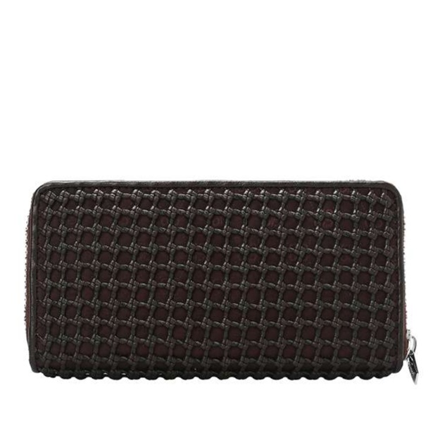 上質なレザー財布、職人による丁寧な編み込み技術が光る長財布。