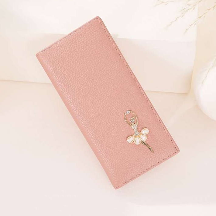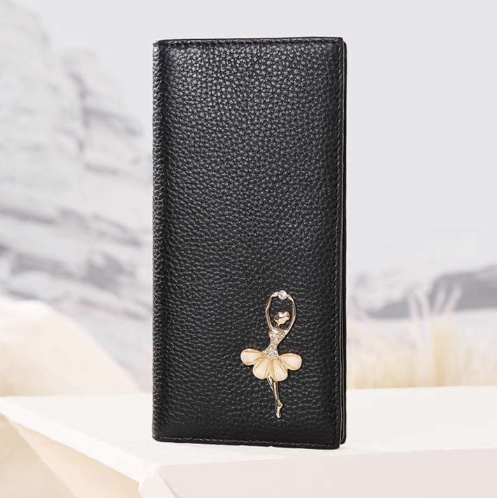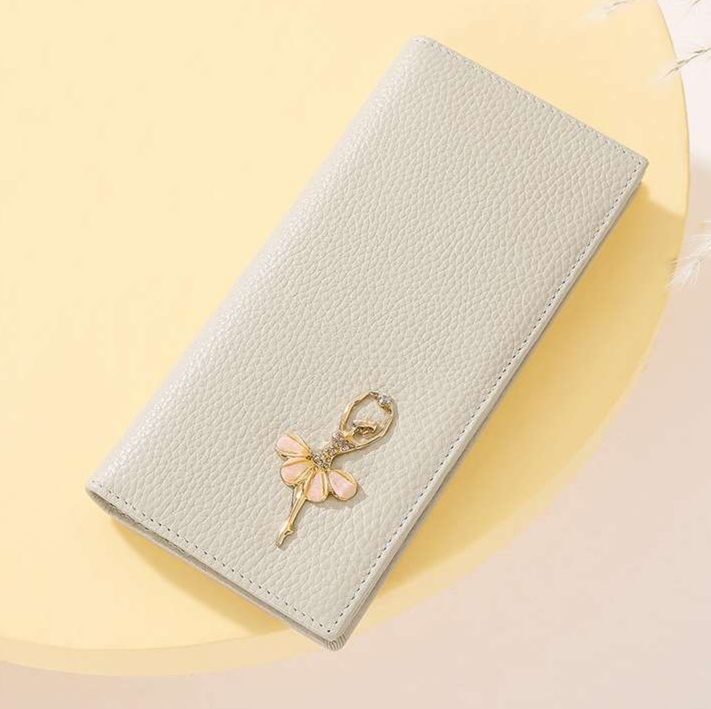 上質な型押し牛革を使用したレザー長財布は、高級感と洗練されたデザインが魅力です。愛らしいバレリーナの装飾が施され、シンプルながら女性の優雅さを引き立てます。日常使いに最適な機能性を備え、クラシカルな雰囲気が漂うこの財布は、長く愛用できる逸品です。あなたのスタイルを格上げする、特別な革財布としておすすめです。