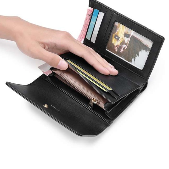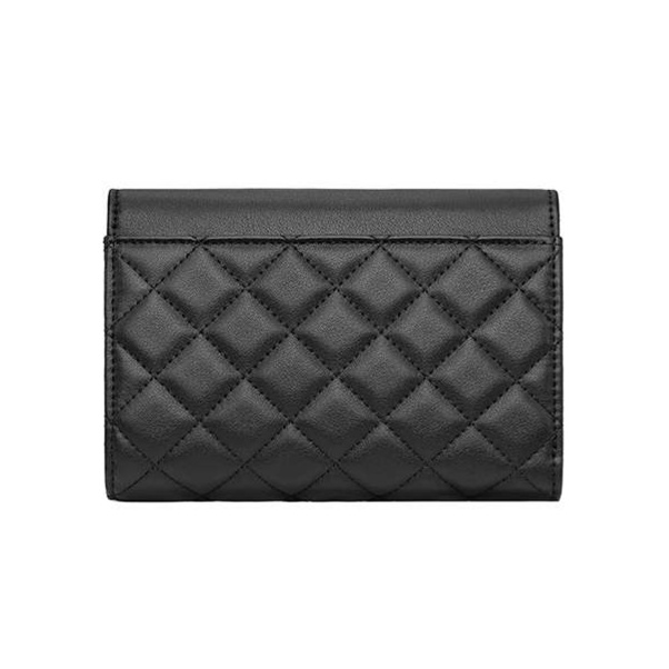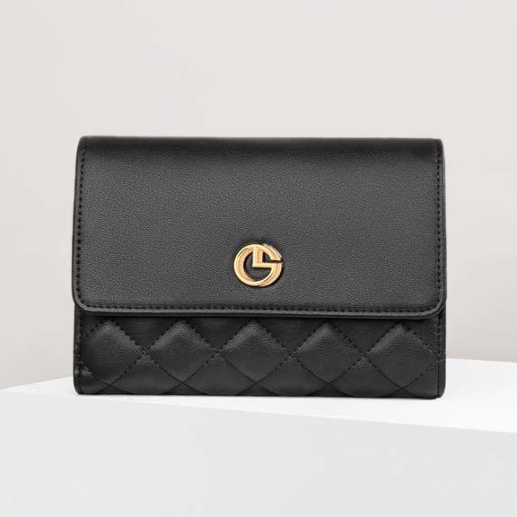 高品質なレザーを使用した二つ折り財布。滑らかな手触りとスタイリッシュなデザインが際立ち、キルティング加工により高級感が漂います。フロントの金具が絶妙なアクセントとなり、日常使いはもちろん、フォーマルなシーンでもエレガントに演出します。洗練された印象を与えるこの革財布は、持つ人のセンスを引き立てるアイテムです。