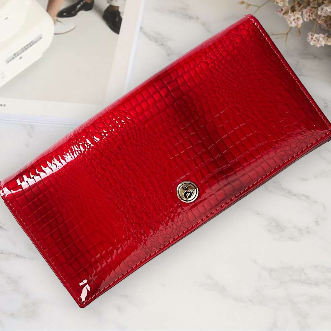 高級感漂うクロコ型押し加工を施したレザー長財布。光沢ある表面と精緻な型押しパターンが魅力を引き立てる逸品。金属製の装飾が上品さを添え、レザー財布の真髄を感じさせる。職人の手による丁寧な縫製が施され、使うほどに深まる本革の味わいを存分に楽しむことができる。洗練されたデザインは、日常使いだけでなく特別なシーンにもぴったりです。