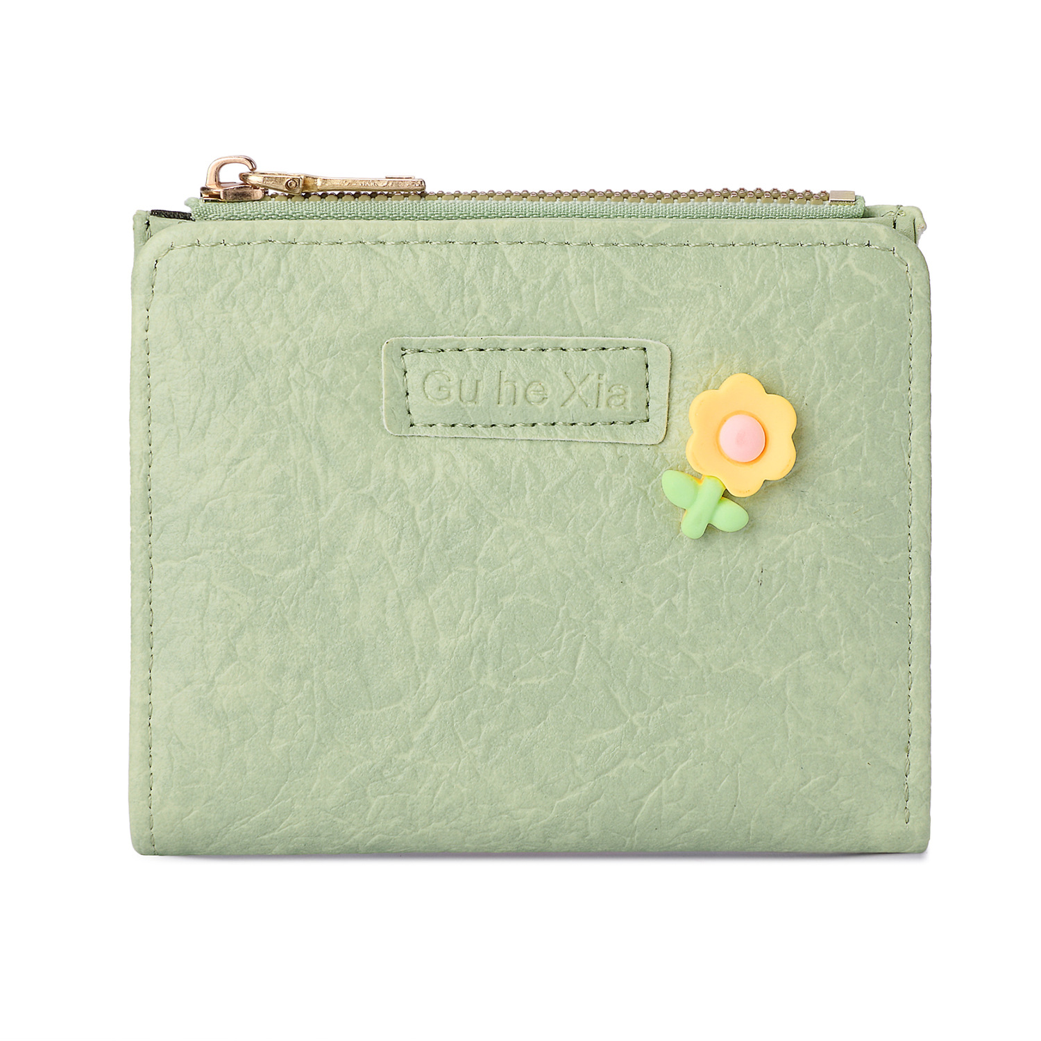 上質な革素材を使用したレザー二つ折り財布です。 カード入れとパスケース機能を兼ね備えた便利なデザインで、日常使いに最適です。 可愛い花モチーフのワンポイントが魅力的で、革 財布をお探しの方におすすめの逸品です。