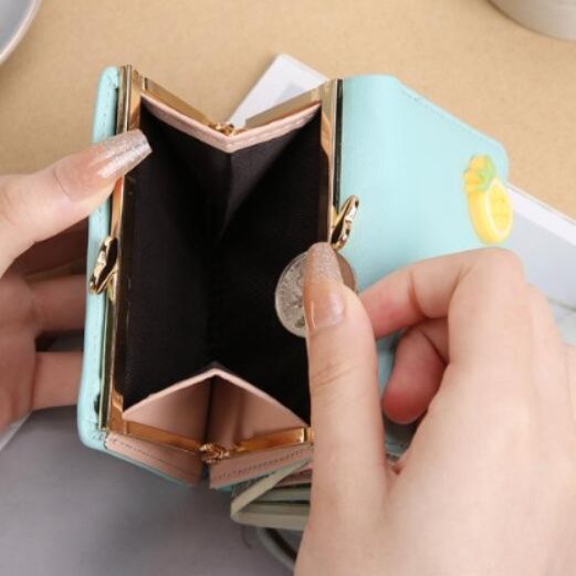 手のひらサイズのレザー三つ折り財布です。革 財布の魅力を活かしたコンパクト設計で、ミニバッグにもすっぽり収まります。 カード収納機能付きで実用性も抜群。可愛いフルーツモチーフのワンポイントがおしゃれなアクセントになり、全6色から選べるカラーバリエーションが魅力です。