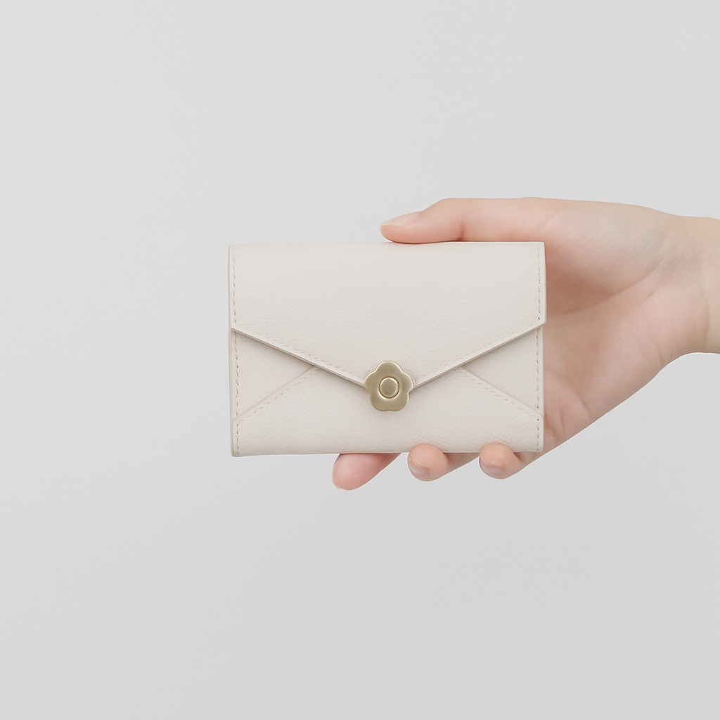 手のひらに収まるミニサイズながら、カード収納と小銭入れを備えた機能的な構造です。