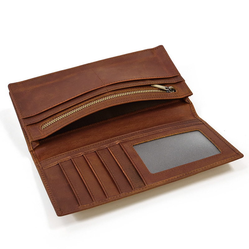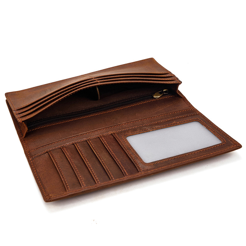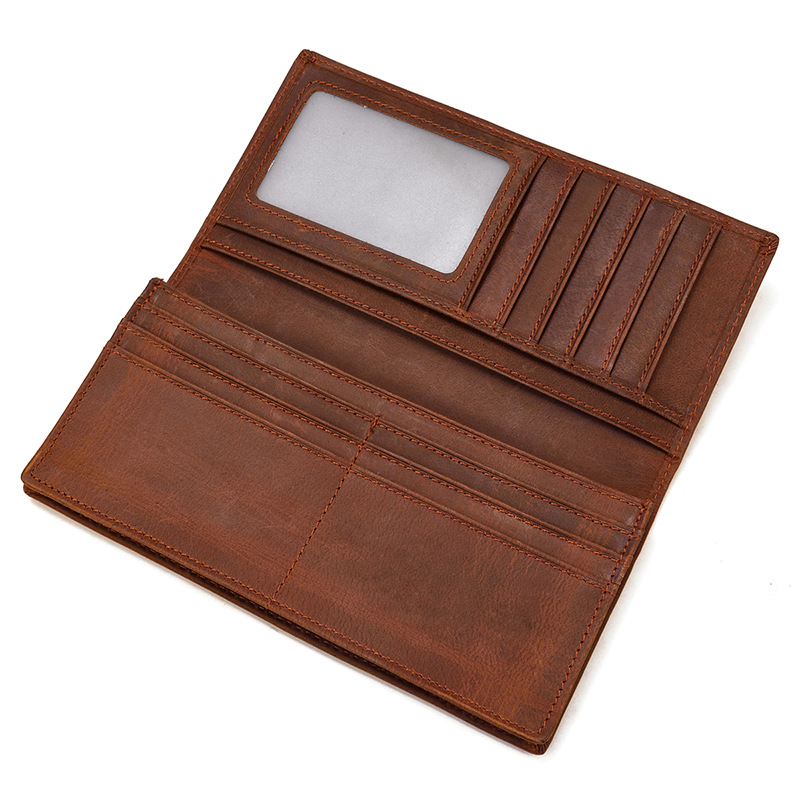 上質な革 財布の魅力を存分に味わえるレザー長財布です。 縦型の二つ折りタイプで、スリムながら収納力に優れています。 内側には複数のカードポケットと便利な窓付き収納、紙幣や領収書を整理できるフリーポケットを備えており、実用性抜群です。 シンプルで飽きのこないデザインは、ビジネスシーンから普段使いまで幅広く対応します。 丁寧なステッチワークが施された本革製で、使い込むほどに味わい深く変化し、長くご愛用いただけます。
