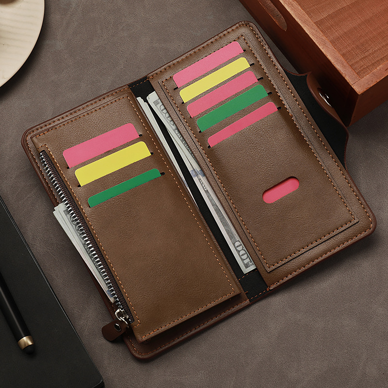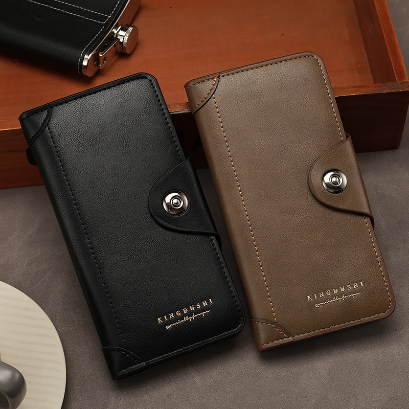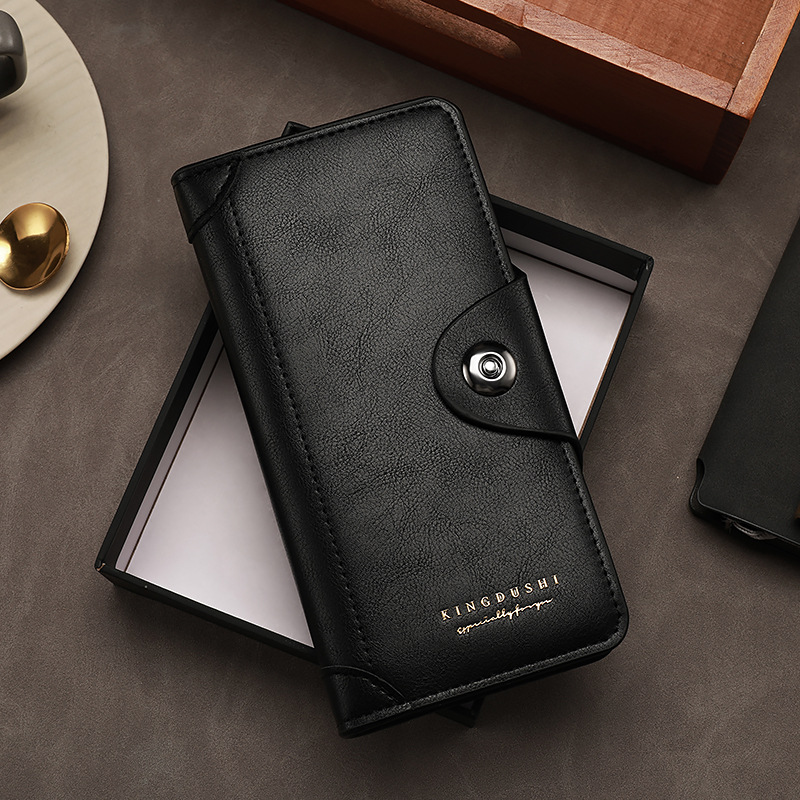上質な革 財布としての風格を持つレザー長財布です。 フロントのスナップボタン留め具が特徴的で、中身をしっかり保護しながらスムーズな開閉を実現しています。 丁寧なステッチワークが施された本革仕様で、使い込むほどに味わい深い経年変化を楽しめます。 カードポケットや札入れを備えた機能的な内装設計により、日常使いから特別な場面まで幅広く対応できる実用性の高い逸品です。