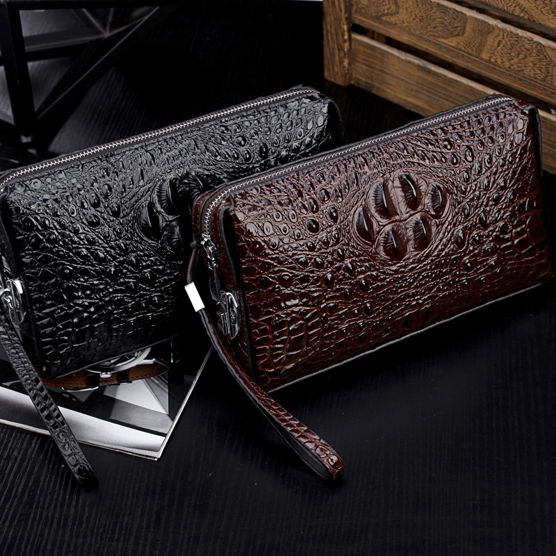 迫力ある鰐革の型押しを施した高級感溢れるレザー長財布です。 立体的に浮き上がる鱗模様と背部の突起が本物のような質感を演出し、持つ人に格別な存在感を与えます。 がま口式の金具開閉で使い勝手も良く、取り外し可能なストラップ付きで持ち運びにも便利です。 革 財布の中でも特に個性的なデザインをお求めの方におすすめの逸品となっております。