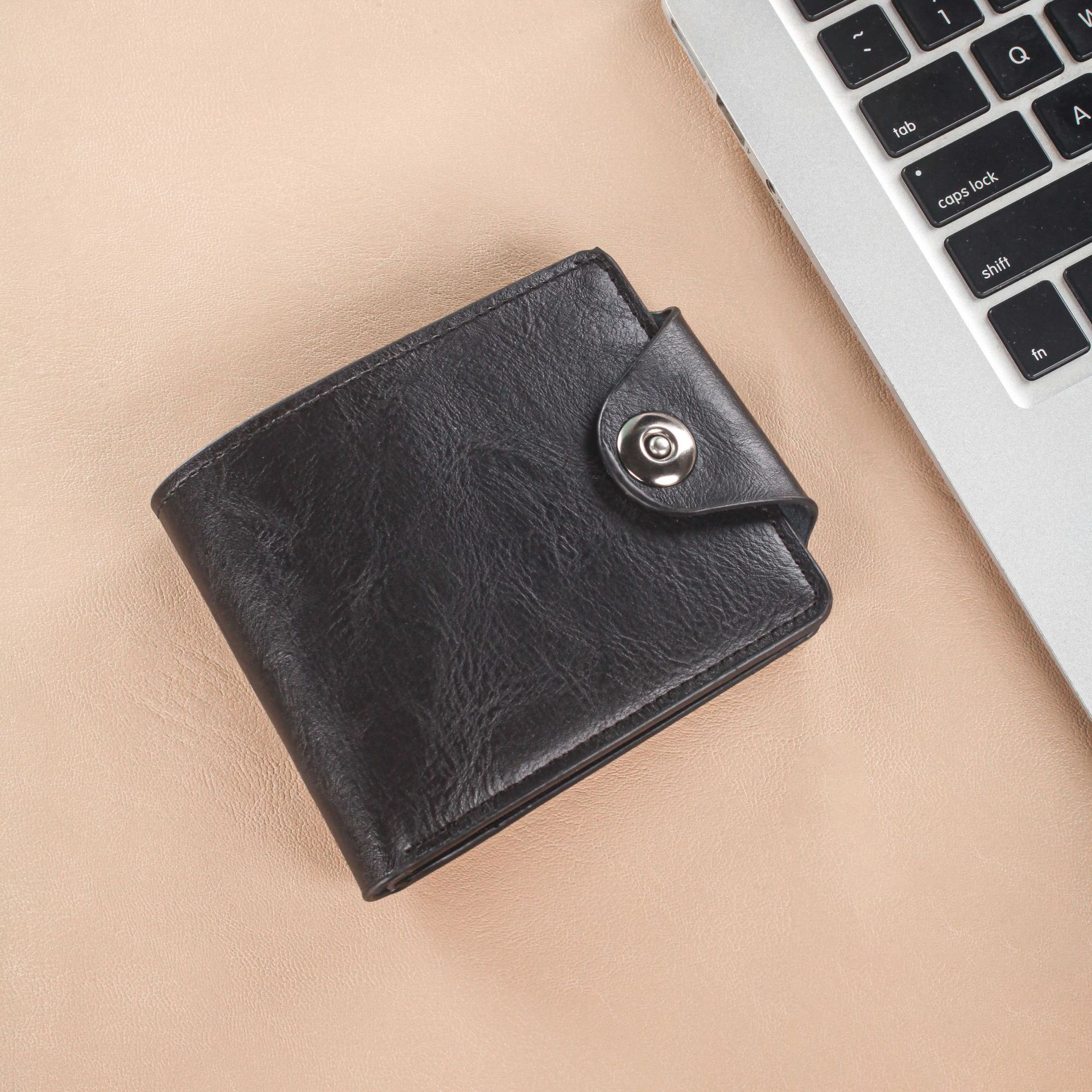 上質な革素材を使用したレザー二つ折り財布です。 スナップボタン式の留め具が特徴で、しっかりと中身を守りながらスムーズな開閉が可能です。 コンパクトなサイズ感でポケットにもすっきり収まり、日常使いに最適な革 財布となっています。 シンプルで飽きのこないデザインは、ビジネスシーンからカジュアルまで幅広くお使いいただけます。 丁寧なステッチワークが品質の高さを物語る逸品です。