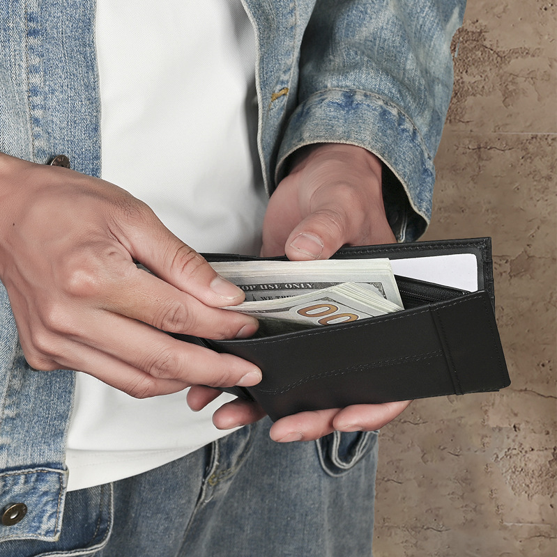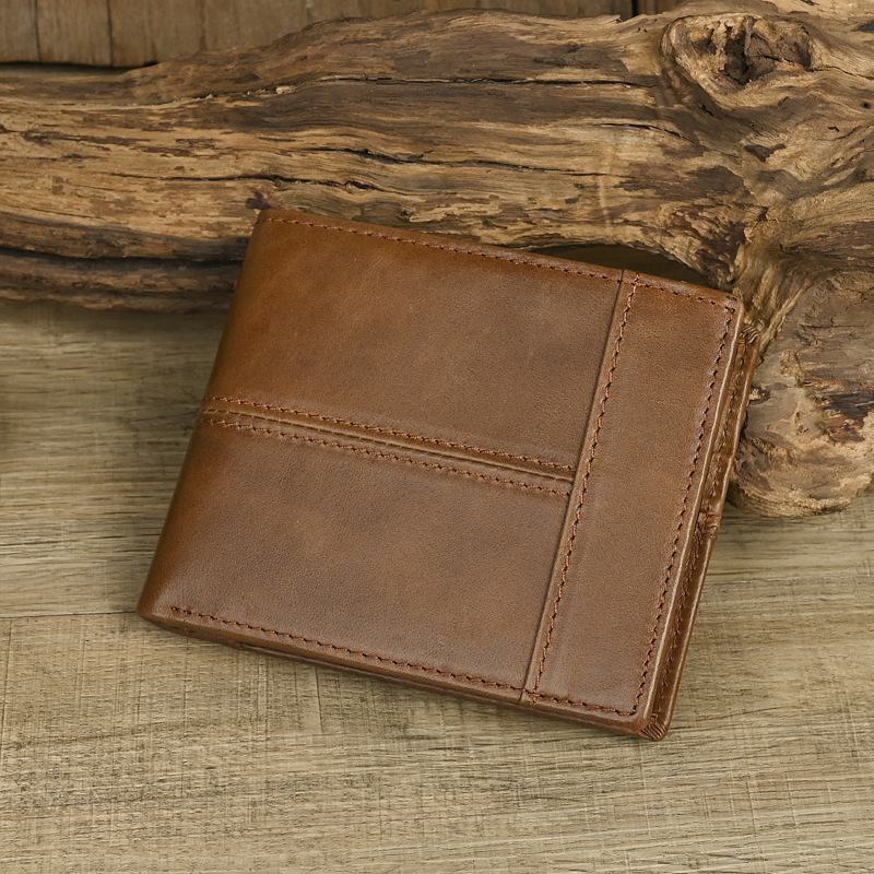上質な本革を使用した革 財布で、シンプルな中にも個性が光るレザー二つ折り財布です。 表面に施された切り替えデザインとステッチワークが特徴的で、使うほどに革の風合いが増していきます。 内側には紙幣入れとカード収納を備え、実用性も十分です。 コンパクトなサイズ感でポケットにもすっきり収まり、日常使いに最適な一品です。 経年変化を楽しみながら長くお使いいただける逸品です。