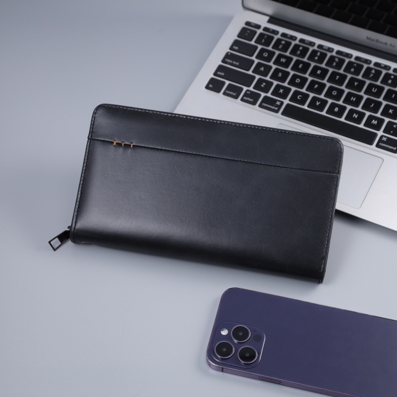 上質な革素材を使用した、洗練されたデザインのレザー長財布です。 ラウンドファスナー仕様で開閉がスムーズで、カードポケットや札入れなど収納力も充実しています。 丁寧なステッチワークが施された革 財布は、ビジネスシーンからカジュアルまで幅広く活躍します。 薄型でスマートなフォルムながら機能性に優れ、長くご愛用いただける逸品です。 使い込むほどに味わい深い経年変化をお楽しみいただけます。