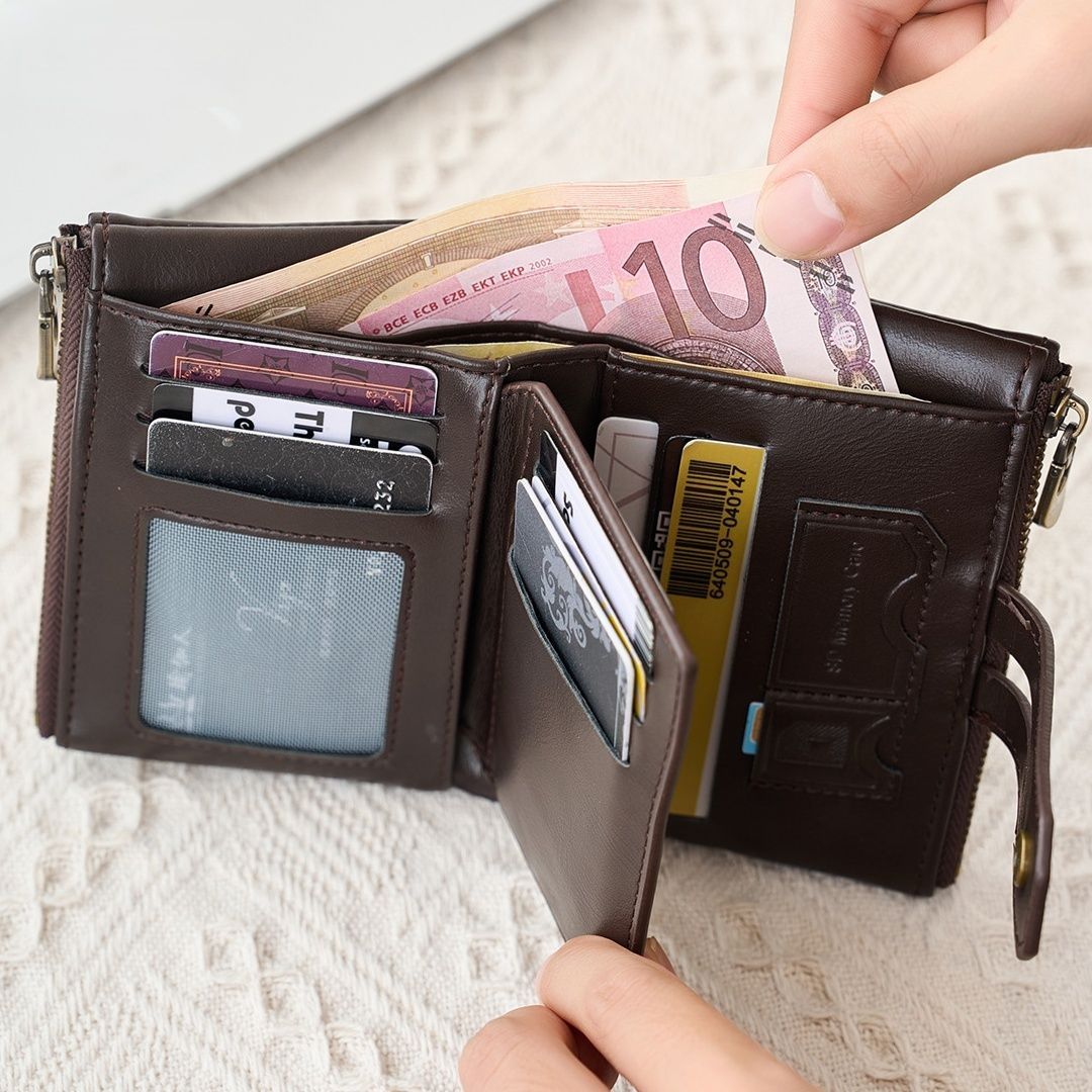 電波遮断機能を搭載した革 財布で、大切なカード情報をしっかり守ります。 レザー三つ折り財布としてコンパクトながら、複数のファスナーポケットと窓付き収納で機能性抜群です。 取り外し可能なチェーン付きでベルトループに装着でき、紛失防止にも役立ちます。 上質な本革を使用し、細部まで丁寧に縫製された職人仕上げの逸品です。 日常使いから旅行まで、幅広いシーンで活躍する多機能財布です。